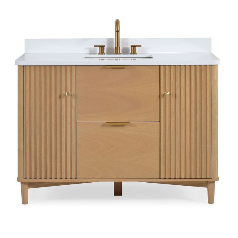 48 Inch Trendy Wood Finish Odelia Bathroom Vanity With White Quartz Top